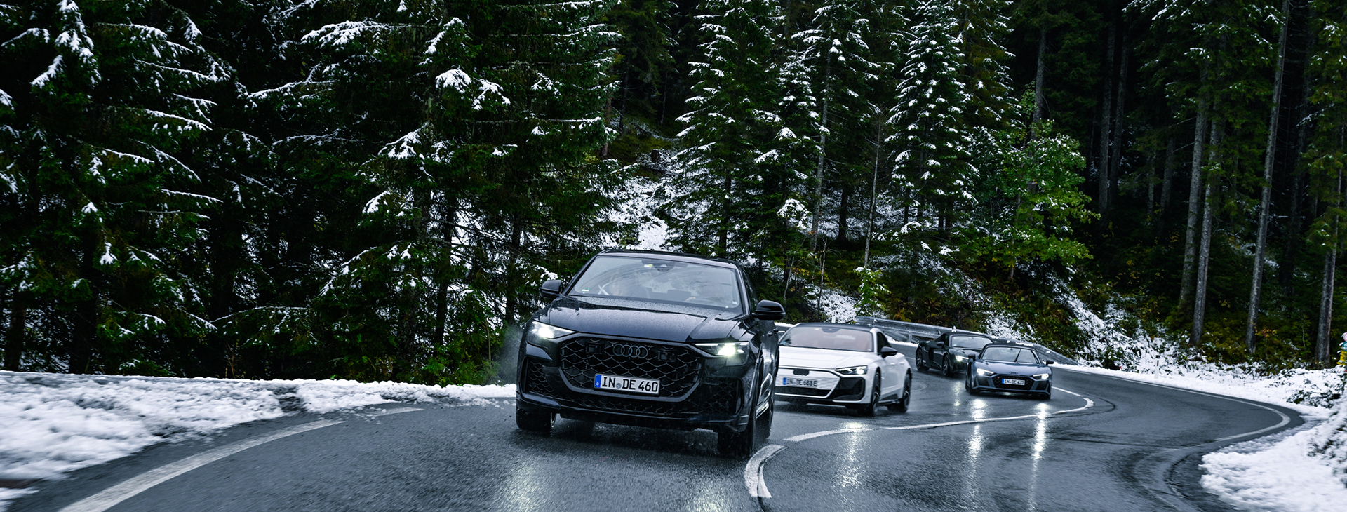 今回のツアーでは、今年マイナーチェンジされた電気自動車のスーパースポーツモデル「Audi RS e-tron GT Performance」、既に生産は終了していますがV10自然吸気エンジンならではの爽快な走りとオープンエアーを楽しめる「Audi R8 Spyder」、そしてフルサイズSUVでありながら4リッターV8エンジンで640馬力を発揮する「Audi RS Q8 Performance」の3モデルが用意されました。参加者は1日ごとに車種を乗り換えながら、3日間でさまざまな車を存分に体感しました。