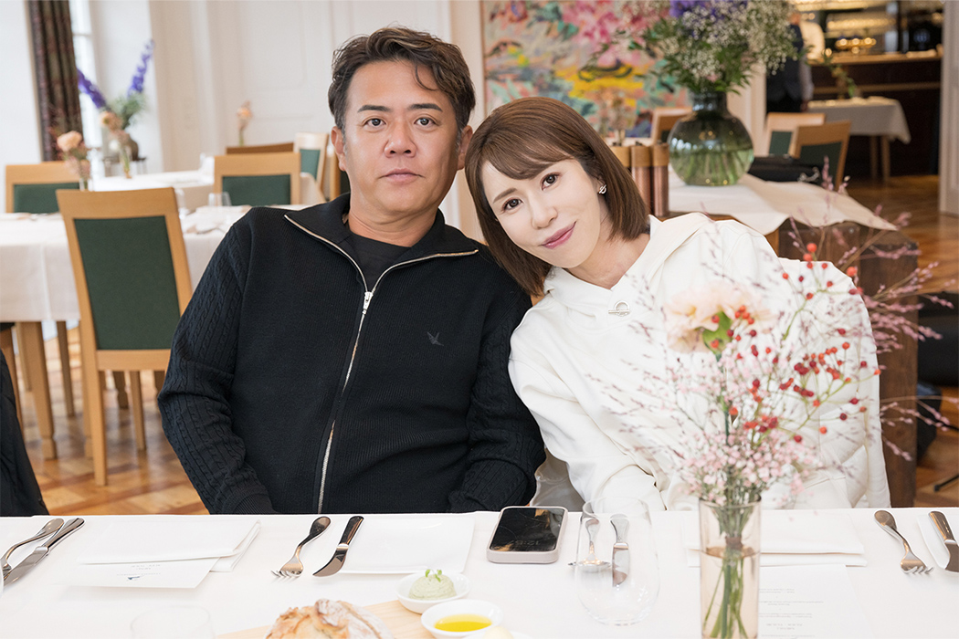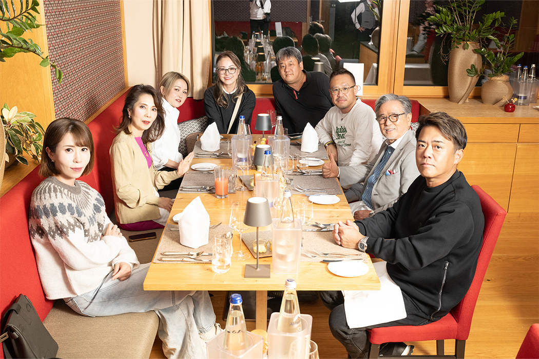 夕食時には皆さまお着替えをされ、素敵な装いで登場。Audi Grand Tour専用のお部屋で、特別なお客様のためだけに用意されたフルコースをお楽しみいただきました。