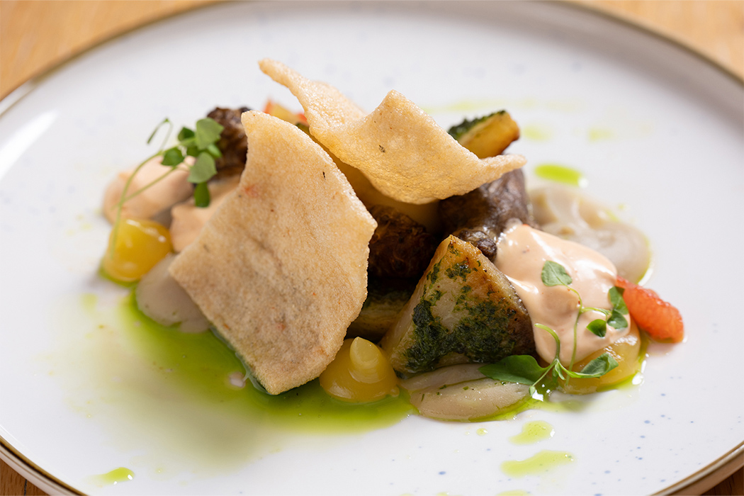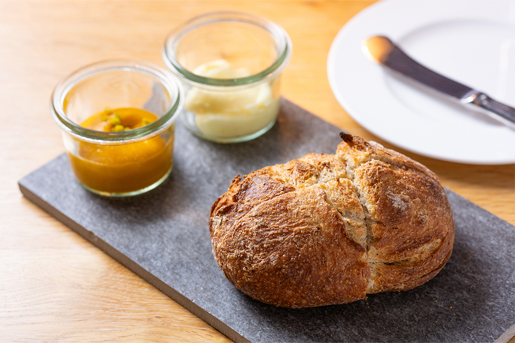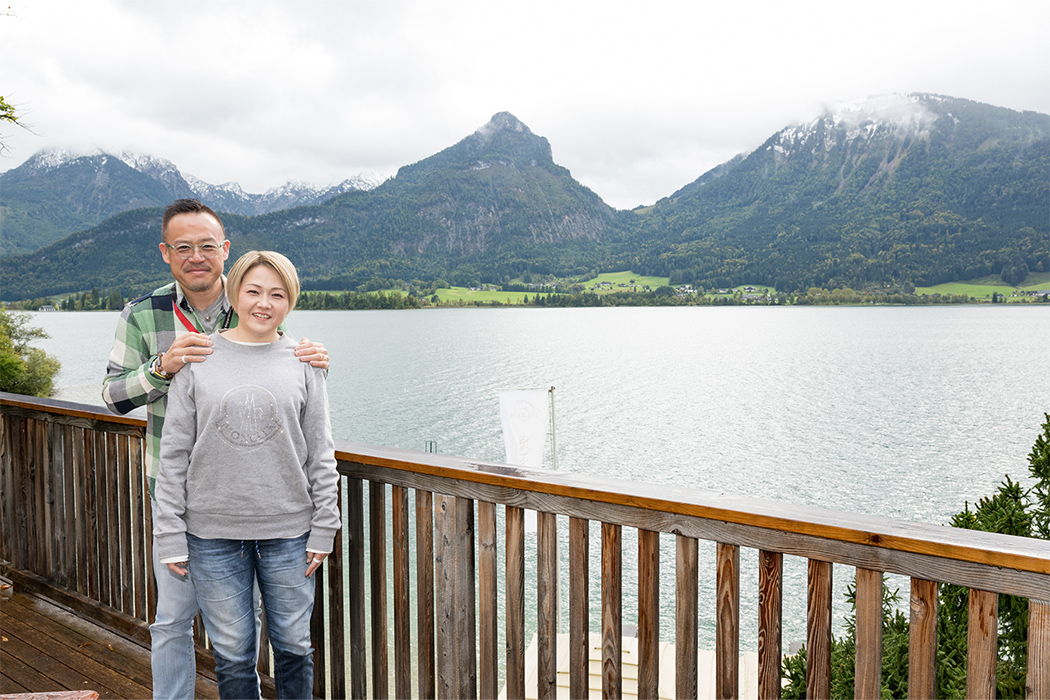 次の目的地であるウォルフガング湖畔に佇むオーベルジュ「Landhaus zu Appesbach」は、一見クラシカルで愛らしいカントリーハウスでありながら、1912年の創業から続く歴史の重みゆえか、どこか重厚感と気品が漂います。湖畔に面したデッキへ出れば、ウォルフガング湖の向こうに広がる山々を望む、息を呑むような絶景とともに、極上のランチをお楽しみいただきました。