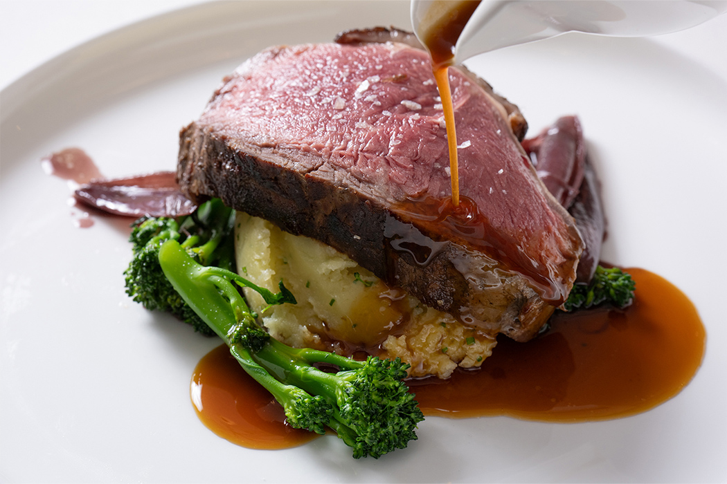 提供されたお食事はバイエルン地方の郷土料理を中心に、この日のために日本人向けにアレンジされたフュージョン料理が用意されていました。「ブリのカルパッチョ」や「生パスタのリングイネ ポルチーニのクリームソース 白トリュフがけ」、そしてバイエルン地方原産のゲルプフィー種を使った『牛もも肉のステーキ』には、郷土料理の『ブラートカルトッフェルン』をワッフル型で香ばしく焼いた添え物が盛り付けられていました。