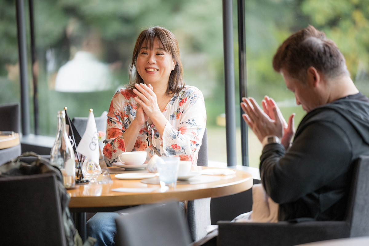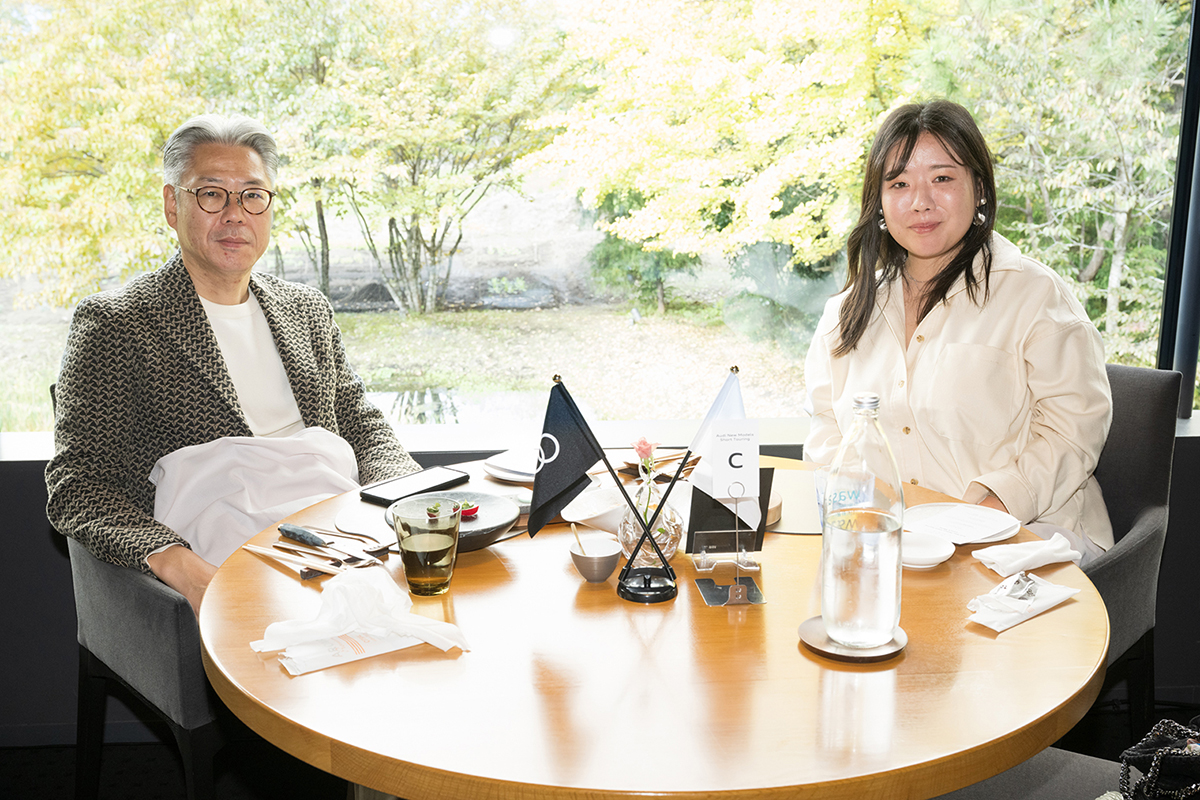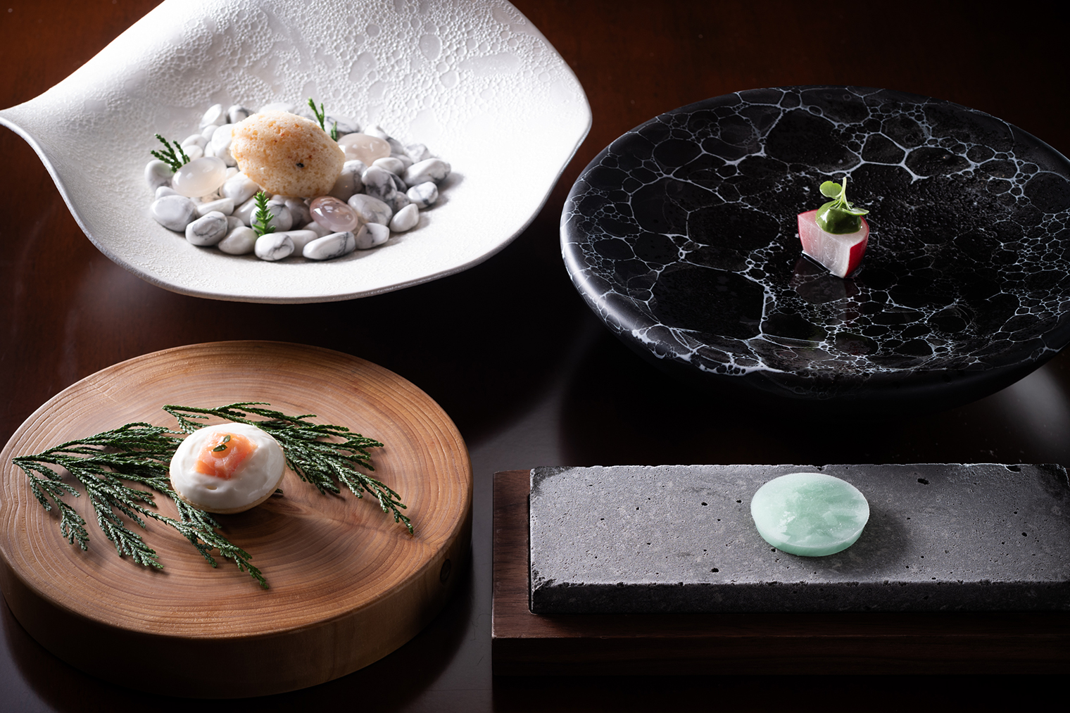 柔らかな自然光と木の温もりが調和した静謐な空間で、エレガントながらも肩肘張らない雰囲気のMaison KEIでランチをお召し上がりいただきました。