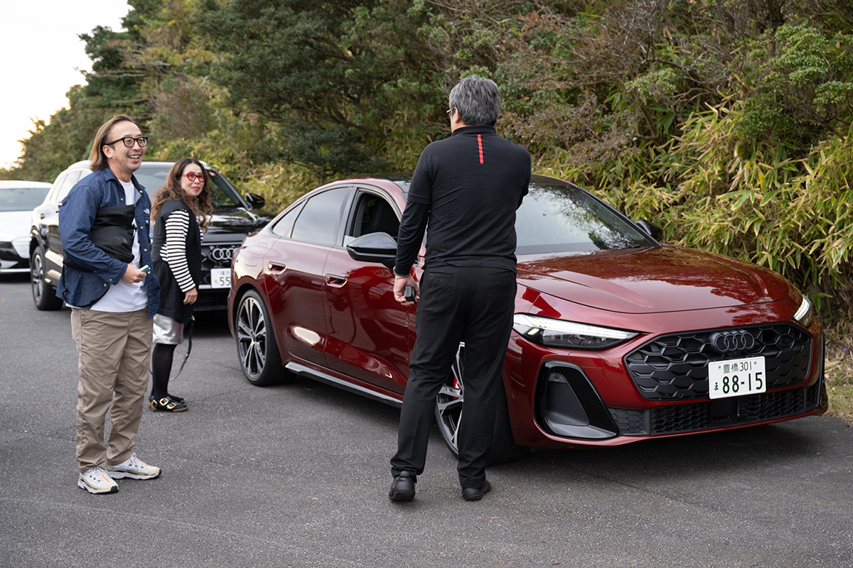 ツーリングの最後は高速道路走行。電気自動車のAudi A6 e-tronとAudi Q6 e-tronは、アクセルを踏んだ瞬間から途切れのないシームレスな加速とワイドなトレッドと幅の広いタイヤがもたらす安定性を発揮。一方、内燃機関のエンジンを搭載したAudi A5とAudi Q5は48Vマイルドハイブリッドシステムで、エンジンをサポートし、滑らかな回転と驚くほどの静粛性に磨きにかかったスムーズで伸びのある加速でそれぞれのパワーユニットを体験していただきました。