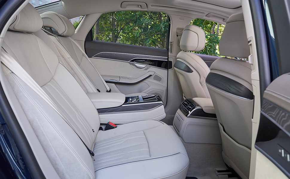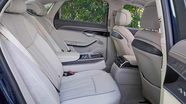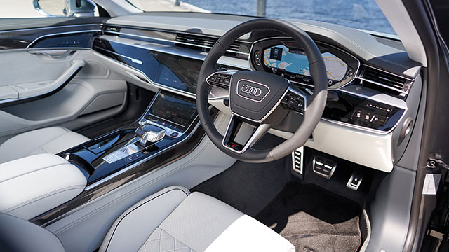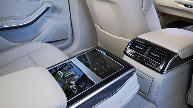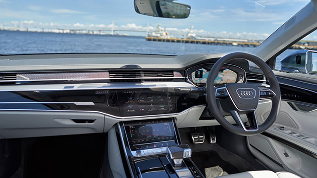 上質なラウンジのような室内空間と乗り心地をを愉しむAudi A8のインテリア。