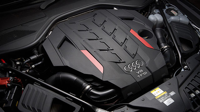 4.0ℓ V型8気筒TFSI®エンジンは、最高出力420kW(571PS)、最大トルク800Nm(81.6kgm)という他の追随を許さない鮮烈なパフォーマンスを発揮。さらに48Vマイルドハイブリッド(MHEV)ドライブシステム、8速ティプトロニックトランスミッション、quattro®などが組み合わさり、スポーツマインドを呼び覚ますダイナミックな走りを実現します。