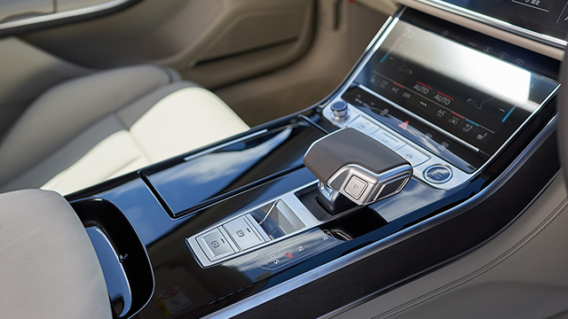 Audi A8のインテリアには、上質さのほかに先進のテクノロジーのエッセンスが注ぎ込まれています。躍動への意志を醸し出すカーボンが配されたセレクターレバー。スマートフォン感覚でタッチ操作ができるMMIタッチレスポンス付きMMIナビゲーションなど、より直感的な操作を叶えるインテリジェントに進化したテクノロジーを備えています。