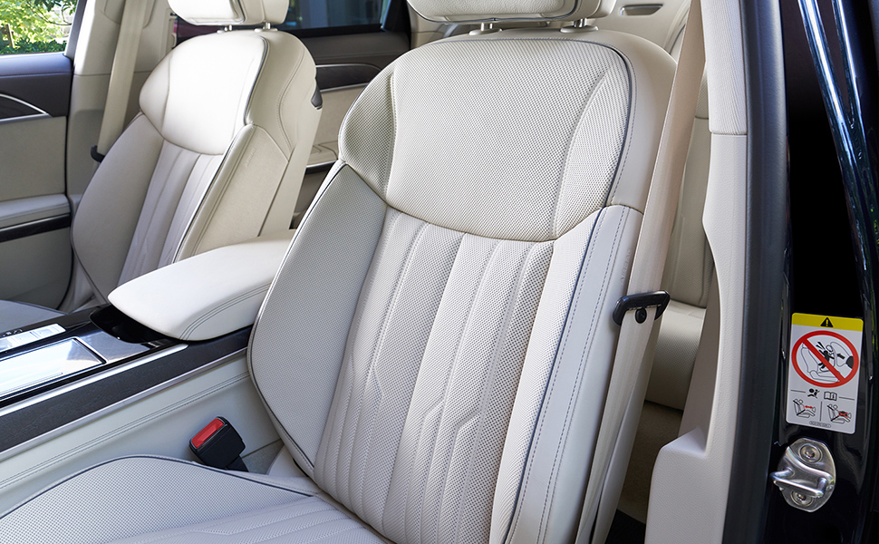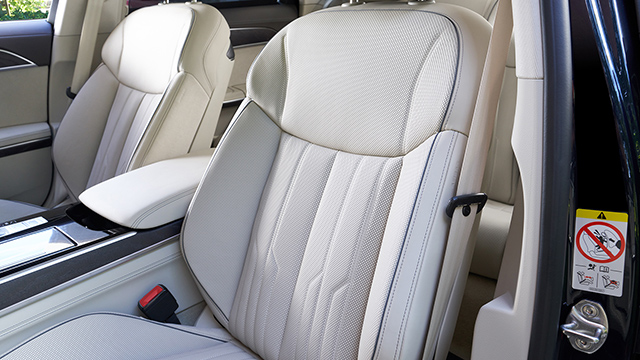 ドライビングの高揚感が続くのに重要なのは、シートの居心地のよさ。Audi A8のシートには高品質なバルコナレザーが標準で仕立てられ、シート地の正確な縫い目からもクラフトマンシップが細部に息づいていることを予感させます。ストレートはもちろん、コーナリング時にも身体をしっかりとホールドする機能性と上質なマテリアルが醸し出す質感を両立し、躍動的なドライビングを支えます。