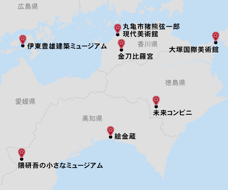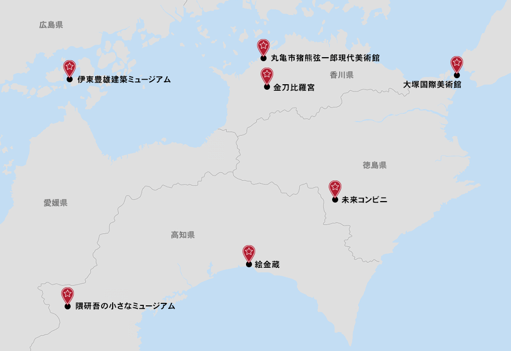 JR丸亀駅のすぐ目の前にある丸亀市猪熊弦一郎現代美術館は、街の再開発から始まった他に類を見ない美術館です。街に向かって開けたオープンスペース「ゲートプラザ」には、多くの市民が通勤・通学で行き交い、子どもたちが広場に置かれたパブリックアートにまたがって遊ぶ、美しくも賑わいのある場所となっています。美術館の名前となっている猪熊弦一郎氏は、世界的に活躍した画家で、少年期をこの丸亀市で過ごしました。「アート県かがわ」を推進した金子県知事の良きアドバイザーとして、猪熊氏は香川県に芸術のある暮らしをもたらしました。この美術館では、猪熊氏本人から寄贈を受けた約2万点の作品を所蔵し、常設展で紹介するとともに、現代美術を中心とした企画展も楽しむことができます。