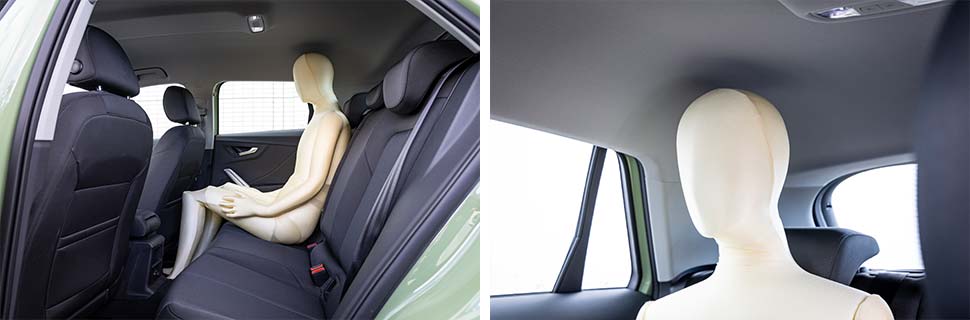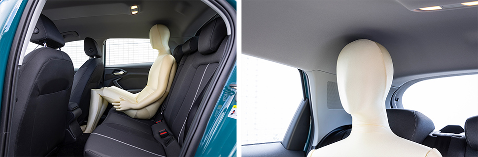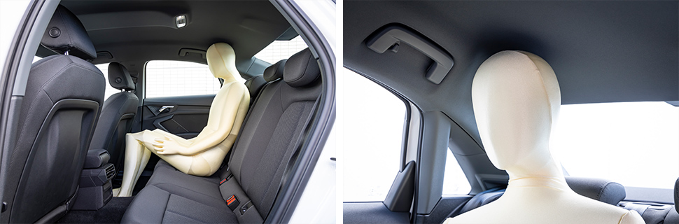 コックピットは適切なドライビングポジションをとったうえで、全高180cmのマネキンを使用してリアシートの広さを各モデルで検証。いずれも膝を無理に折りたたむことなく座れるだけでなく、ヘッドクリアランスも掌を差し込んでも余裕があるほどのスペースを確保。窮屈なイメージの室内ですが、実際は大人がゆったりとくつろげる実用性を備えていることが分かります。