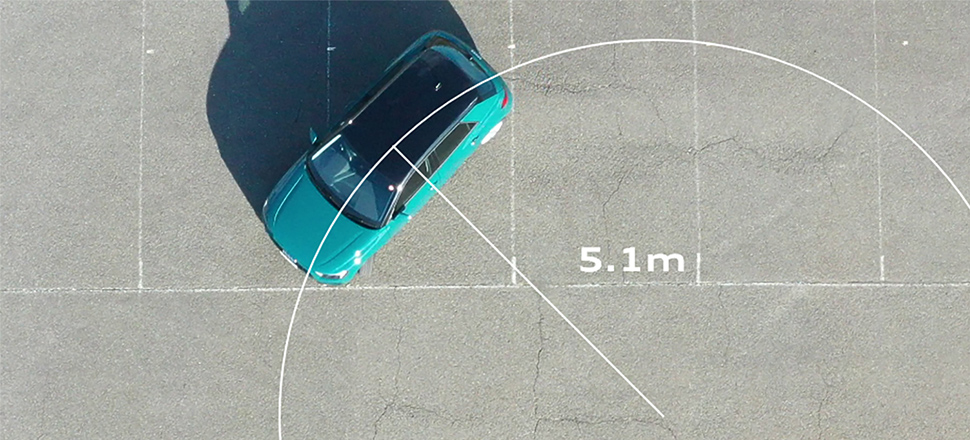 今回ご紹介しているAudiのコンパクトモデルはいずれも運転時の小回りでは他のモデルと大きな差が。車両の小回りに直結する最小回転半径(ハンドルを目いっぱい切り低速で回転)は5.1m。細い路地が多い住宅地など日本の道路事情にもマッチして、どんな道でも難なく走り抜けます。