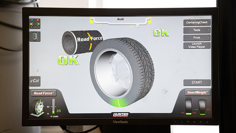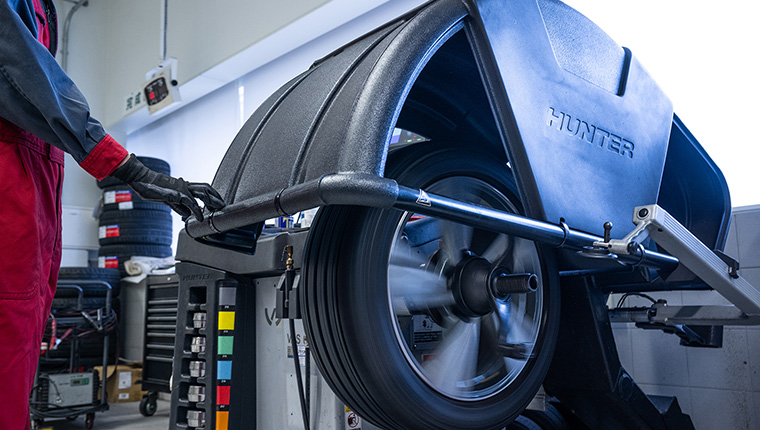 曽根:タイヤの状態をチェックする際に大切なのは溝の深さからわかる消耗度合いだけではありません。ここで行うのがバランサーと呼ばれる特殊なタイヤ点検工程です。ひとつひとつのタイヤを専用機器に装着して実走行時の状態を再現。荷重をかけてホイールとタイヤのマッチングを確認することで正しい位置に設定し直すことができます。これにより直進の安定感や走行性能のアップ、さらに燃費の向上にも期待できるなど、日々の快適なドライブのために重要なポイントと言えるでしょう。
