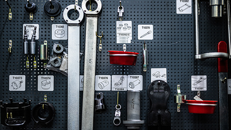 曽根:運転支援機能の鍵を握る各種センサー類はまさにAudi先進技術の結晶であり、点検にはエイミングと呼ばれる作業が欠かせません。この作業にもAudi専用のツールが必要となります。