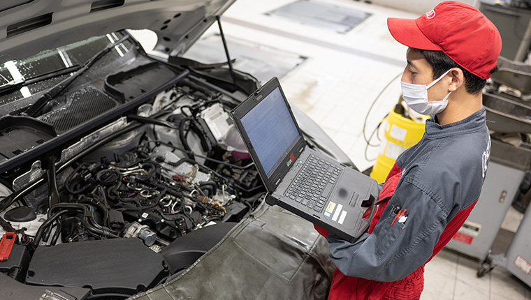 曽根:車検はそもそも国が指定した最低限の項目を確認する作業ですが、Audiの正規ディーラーに入庫いただいた場合は基本の車検項目にプラスしてAudi専用の機器を使っての診断を行っております。