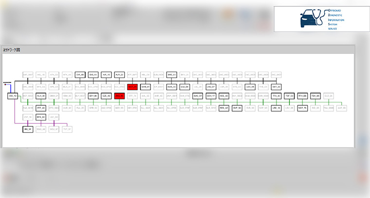 曽根:テスターをつなぐことで図のようにAudi内部のシステムが可視化され、複雑に絡み合った各部位との関係性を分かりやすく確認することが可能です。不具合がある箇所は色がついてすぐに発見することができるので、イチからすべての箇所を確認することなくスムーズに、そして正確に把握することでスピーディな作業を可能にしているのです。