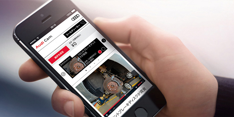 Audi Camは、サービス入庫されたお車の状態を専用Webサイトから動画や写真でご確認いただくことができる先進のサービスです。入庫したあとは、作業実行の承認などすべてWeb上でスマートにやりとり。マルチデバイス対応で、いつでもどこでも24時間アクセスが可能。外出先でのちょっとしたお時間や、ご家族と相談しながら、整備内容をご覧いただけます。