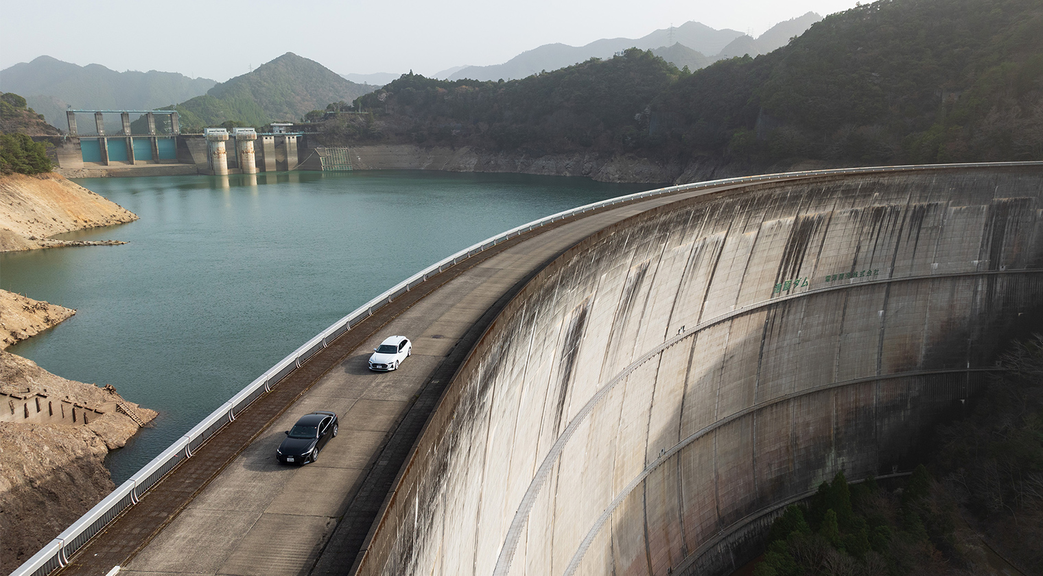 吉野熊野国立公園内にある池原ダムは上部に国道が通り、“走る”ことが好きな人たちが全国から集まるスポット。昭和39年(1964年)に建設された高さ110m・堤頂長460mの発電用ダムで、アーチダムとしては国内最大の総貯水容量(3億3840万㎥)という壮大な規模は圧巻です。