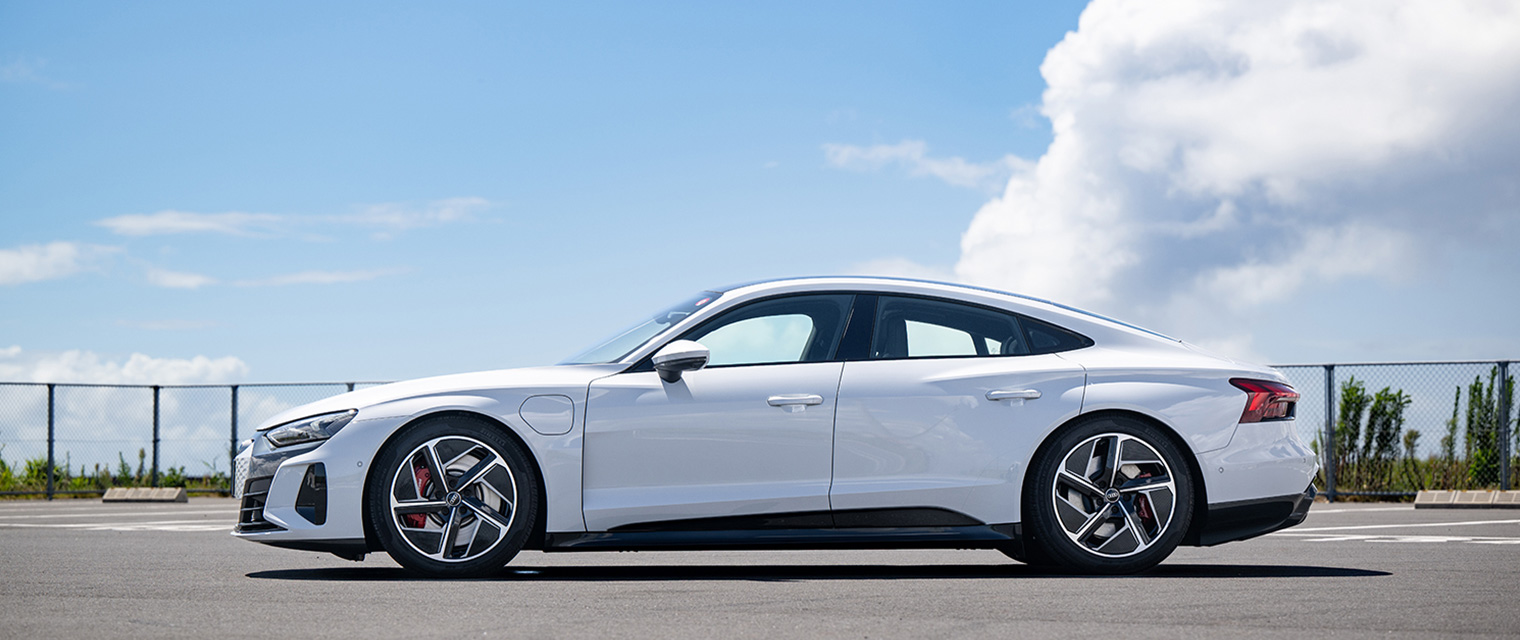 車内の静かさには、驚きました。特にブレーキを掛ける寸前の静粛性は衝撃ですね。ガソリンエンジンだと、ギアの回転数が大きくなると音が大きくなりますが、Audi RS e-tron GTはすごく静かでストレスがないです。パワーユニットがモーターで静粛だと、タイヤの音などロードノイズが聴こえるのかなと思っていましたが、そんなことないですね。これなら、運転しながら音楽も会話も存分に楽しめると思いますよ。