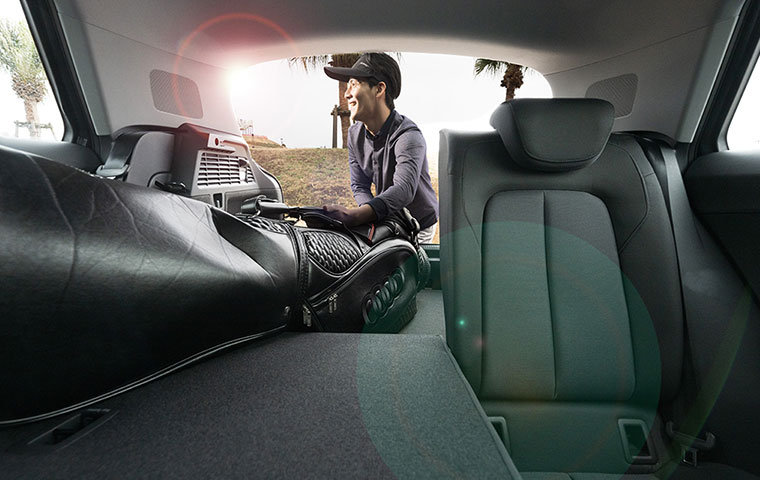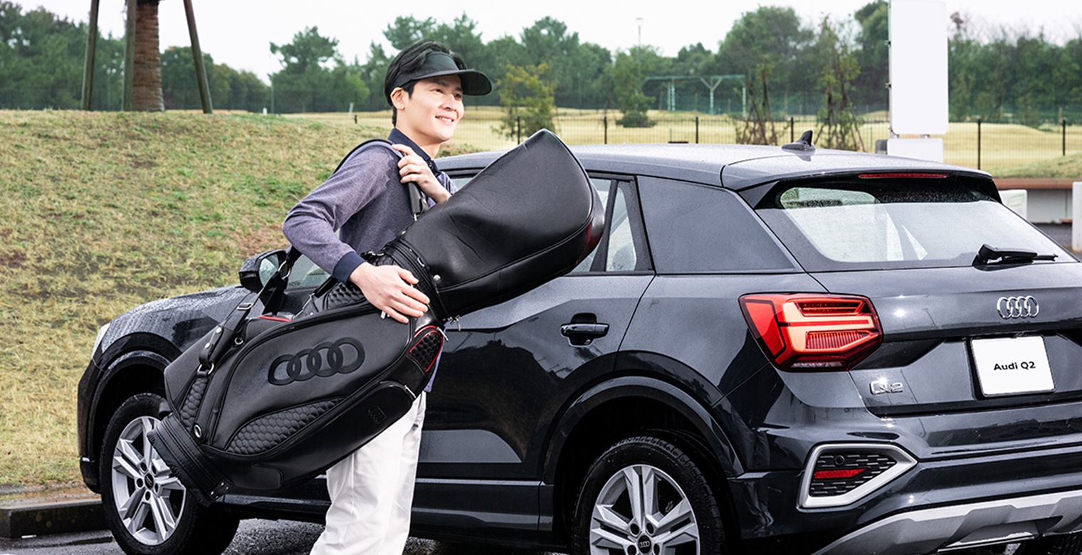 Audi Q2はコンパクトカーだけれど、リアシートを倒せばゴルフクラブも難なく収まる広さがあります。コンパクトサイズだからこそ運転がしやすい取り回しの良さがあって、大容量のラゲッジスペースもある。いいところがギュッと詰まった一台だと思います。