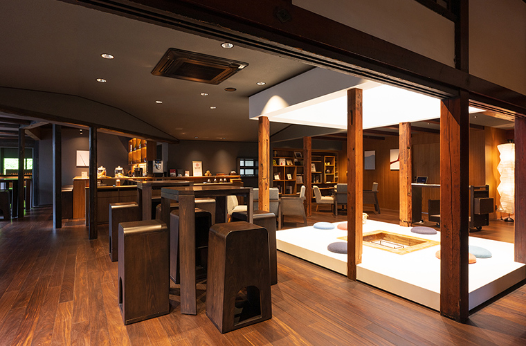 館内には昔ながらの土間や囲炉裏、そして随所に配されたアートが、まるで美術館のような独特の雰囲気を釀し出します。広々とした畳張りの和風ラウンジエリア、バーエリアなど、くつろぎ方は自由です。ファニチャーは雪をイメージしたものが多く、たとえば丸みを帯びた大きなソファは雪山をイメージ。かまくらを思わせるソファでは自分だけの時間に没入できます。ひとりでも大切な人とでも――喧騒とは無縁の、特別な時間がここにはあります。