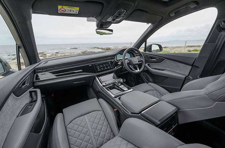 3列シートで、7人乗りのAudi SQ7。乗員数や荷物の量に応じたシートアレンジが可能で、日常ユースにおける実用性はもちろん、心躍るアウトドアへの頼もしい味方です。ファーストクラスのインテリアは長距離移動の疲労を軽減し、独立した空調は乗員それぞれの快適性を実現します。