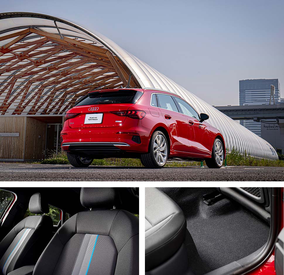 Audi A3もまた、シートや足元の素材にペットボトルの再生素材を使用するなど、Audiの持続可能な社会へ向けたサステイナブルな未来への取り組みが反映されています。