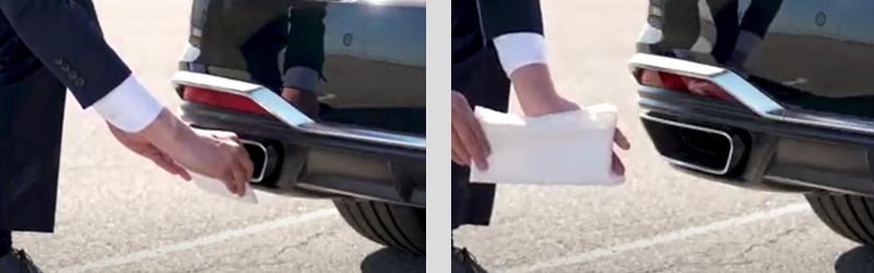 有害な排気も少なく、マフラーに白い布を当てても汚れはつきません。