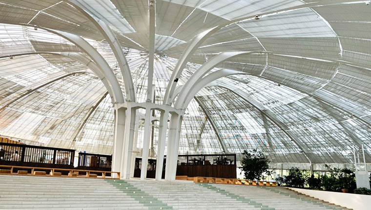 甲府盆地の大パノラマが広がる高台に位置する広大な笛吹川フルーツ公園。日本の建築家である長谷川逸子氏が設計した象徴的な3つのドームは、まるでくだものの木の幹や枝のような鉄骨が建物の中央からそびえたっていて見ごたえがあります。建物だけでなく、季節や気候に左右されることなく、子どもから大人まで一年中楽しめるイベントや施設が盛りだくさんあるのも大きな魅力。また、新日本三大夜景のひとつとしても有名なこの場所から、富士山と甲府盆地の景色を見晴らせば、その美しさに胸を高鳴らせるでしょう。