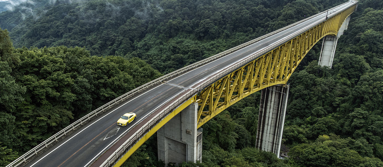 川俣川渓谷にかかる高さ100メートル、全長490メートルの八ヶ岳高原大橋は「黄色い橋」とも呼ばれる黄色に塗られたユニークな橋です。橋からは北に八ヶ岳、南西に南アルプス、南に富士山を望むことができます。秋には、ナラやブナ、ナナカマド、カエデ、カラマツなどの紅葉に映える山から見る橋も美しく、橋の清里駅側にある展望台駐車場からその姿を一望できます。