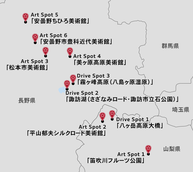 豊かな自然も味わいながら、今の自分の感性を研ぎ澄ませるアートと出合えるドライブをお愉しみください。